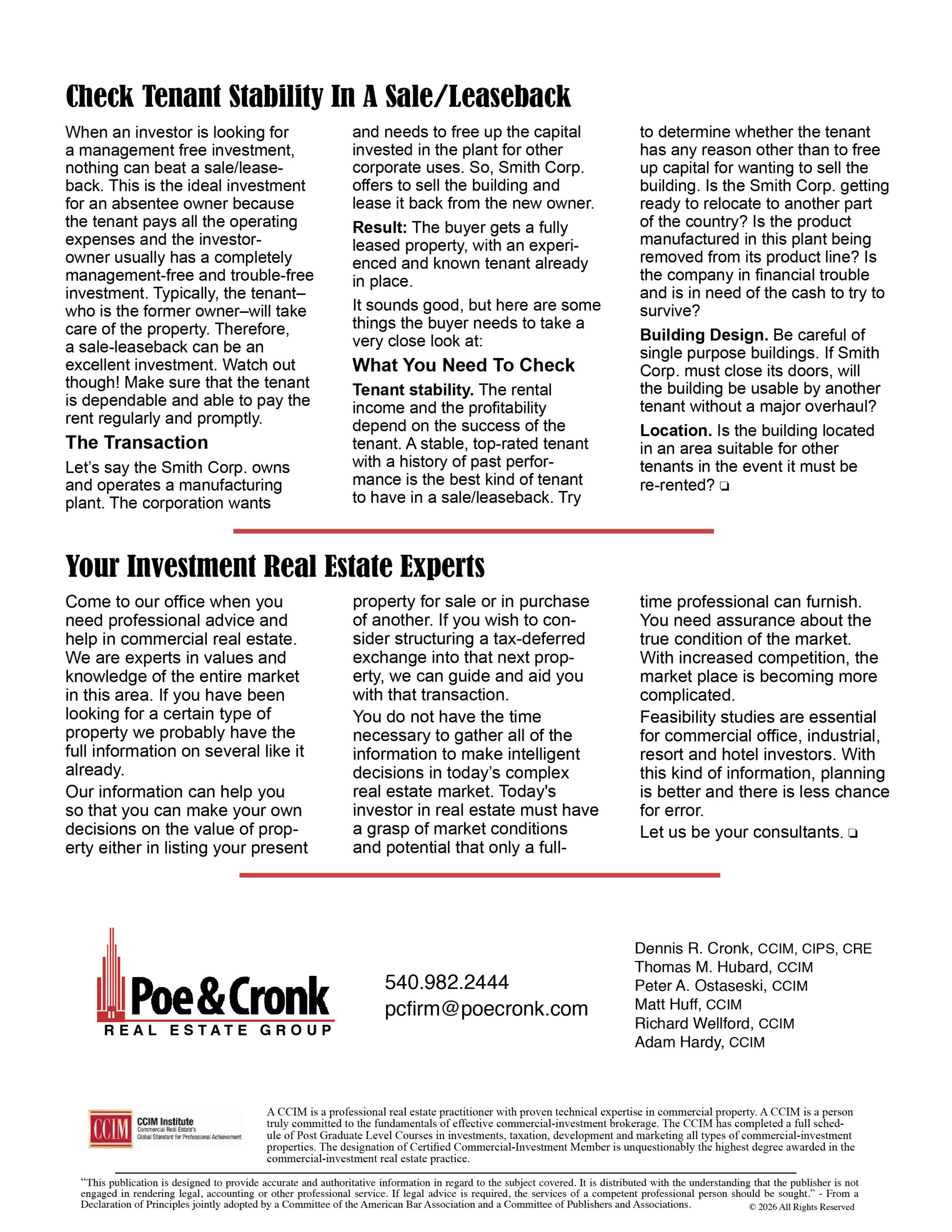 Poe & Cronk: Inside CRE Newsletter March 2026