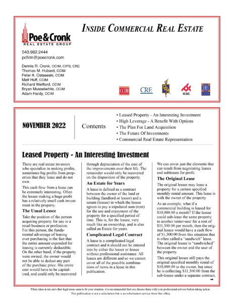 Poe & Cronk: Inside CRE Newsletter November 2022