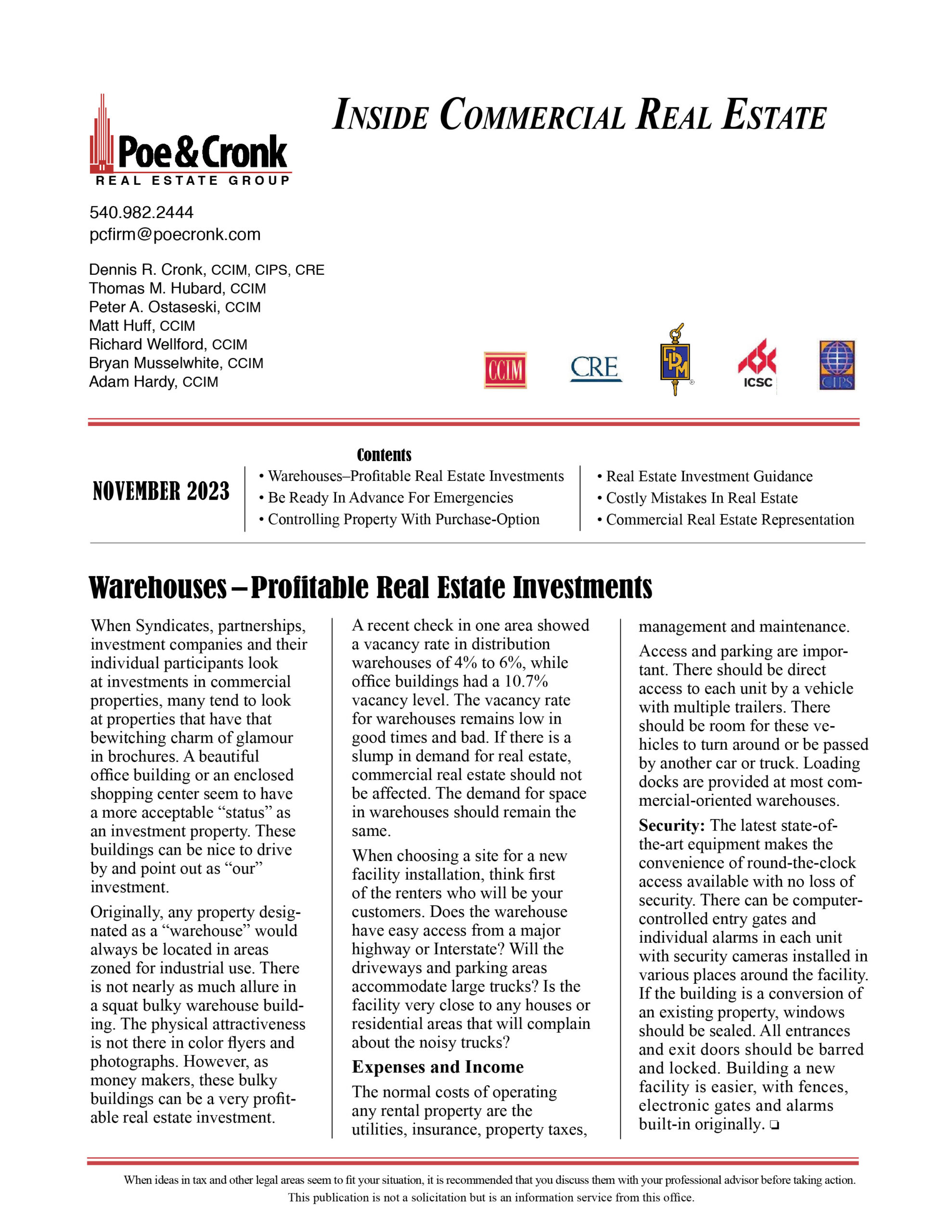 Poe & Cronk: Inside CRE Newsletter November 2023