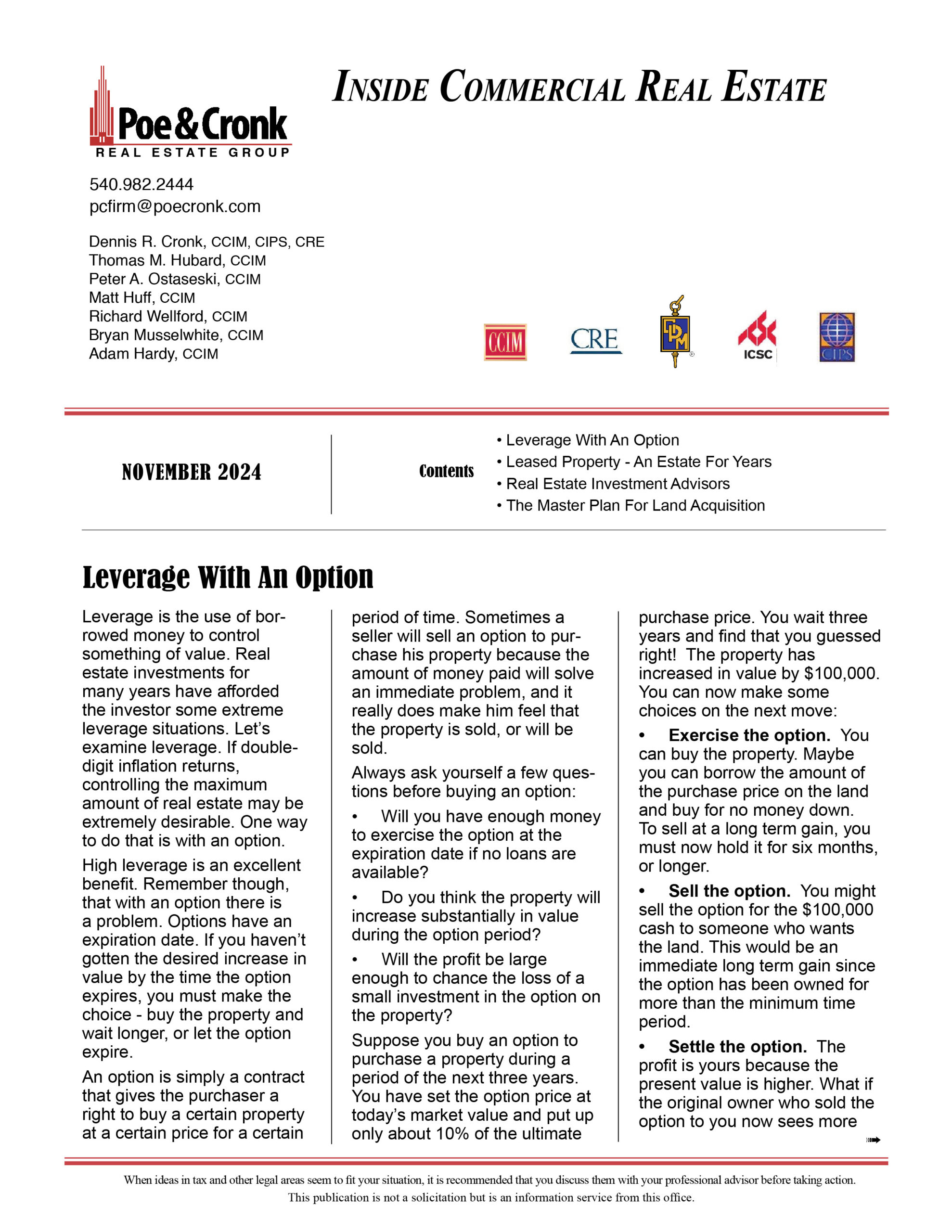 Poe & Cronk: Inside CRE Newsletter November 2024